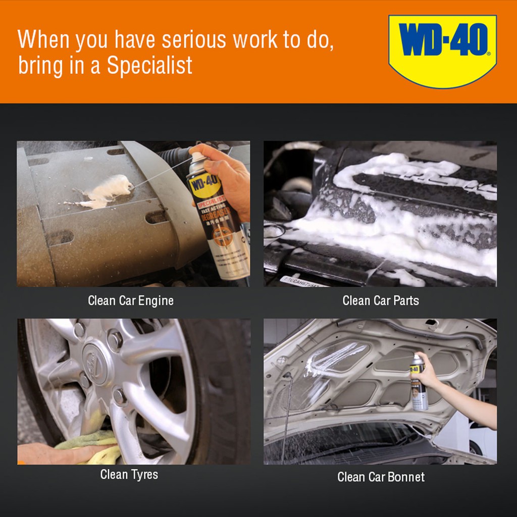 Known as "the can with thousands of uses," WD-40® protects metal from rust and corrosion, penetrates stuck parts, displaces moisture, and lubricates just about anything