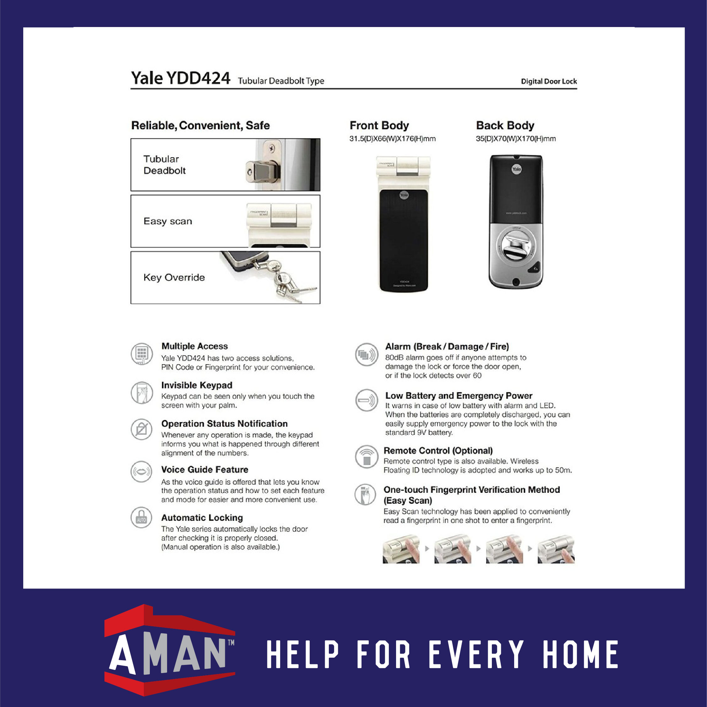 Works with YALE Link Apps to access your lock remotely (To access YALE Link Apps function, user would need YALE Wi-Fi Bridge and YALE Bluetooth Module available under Accessory Section)