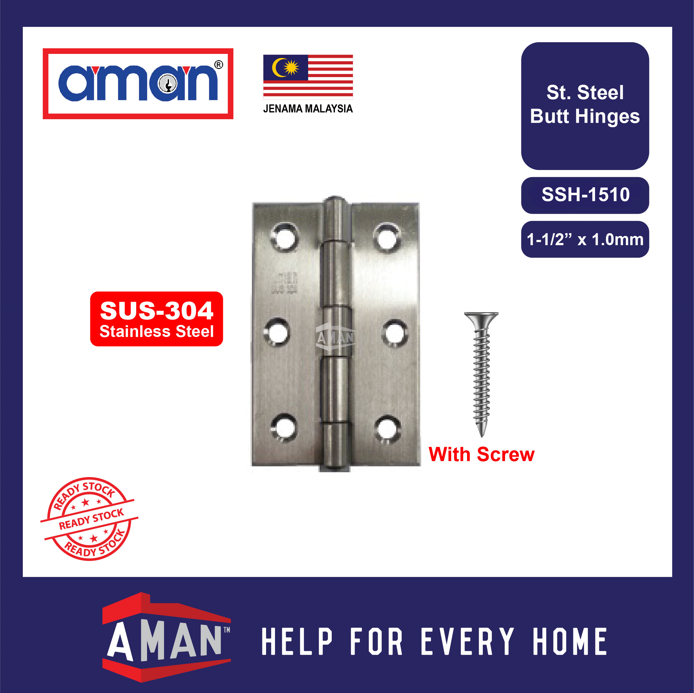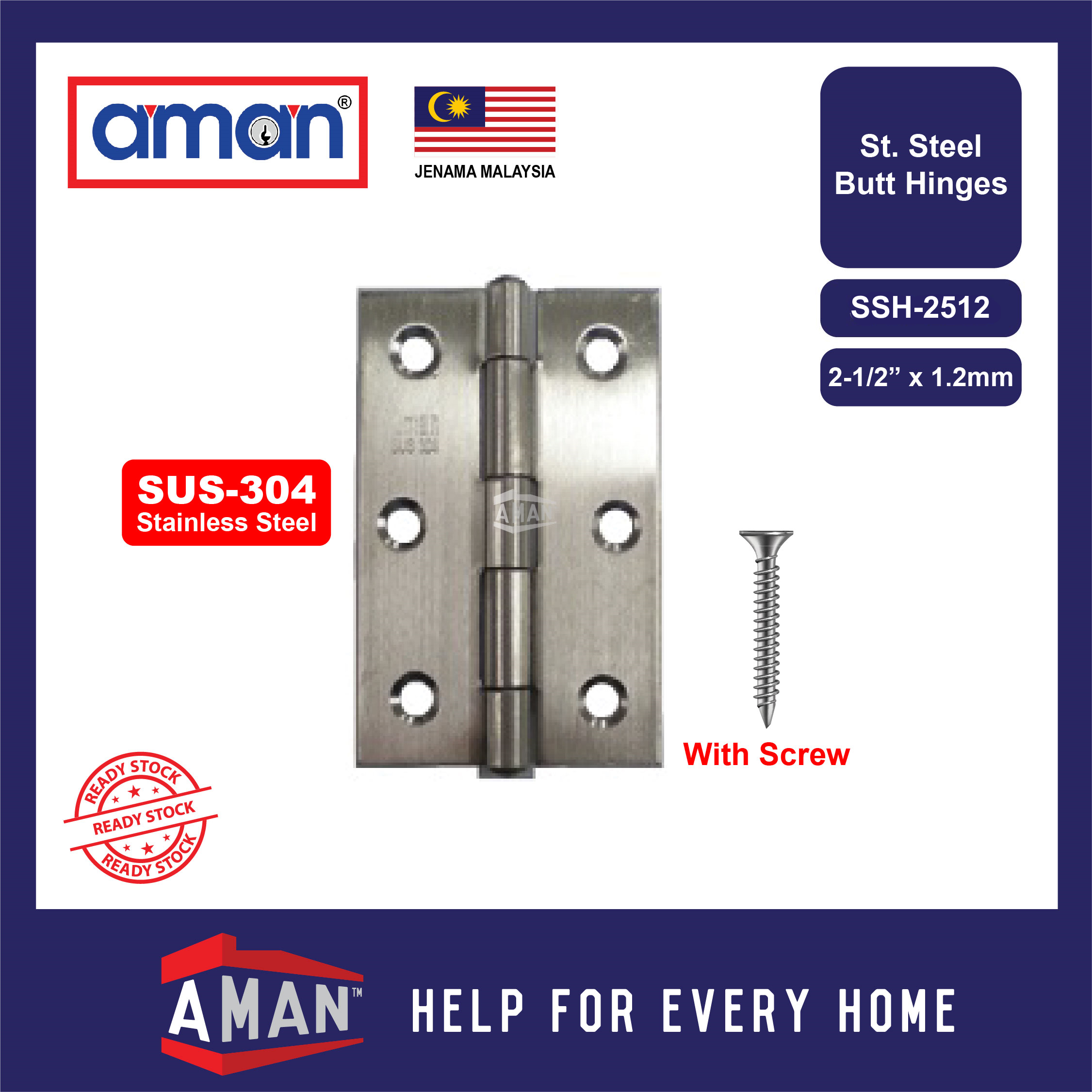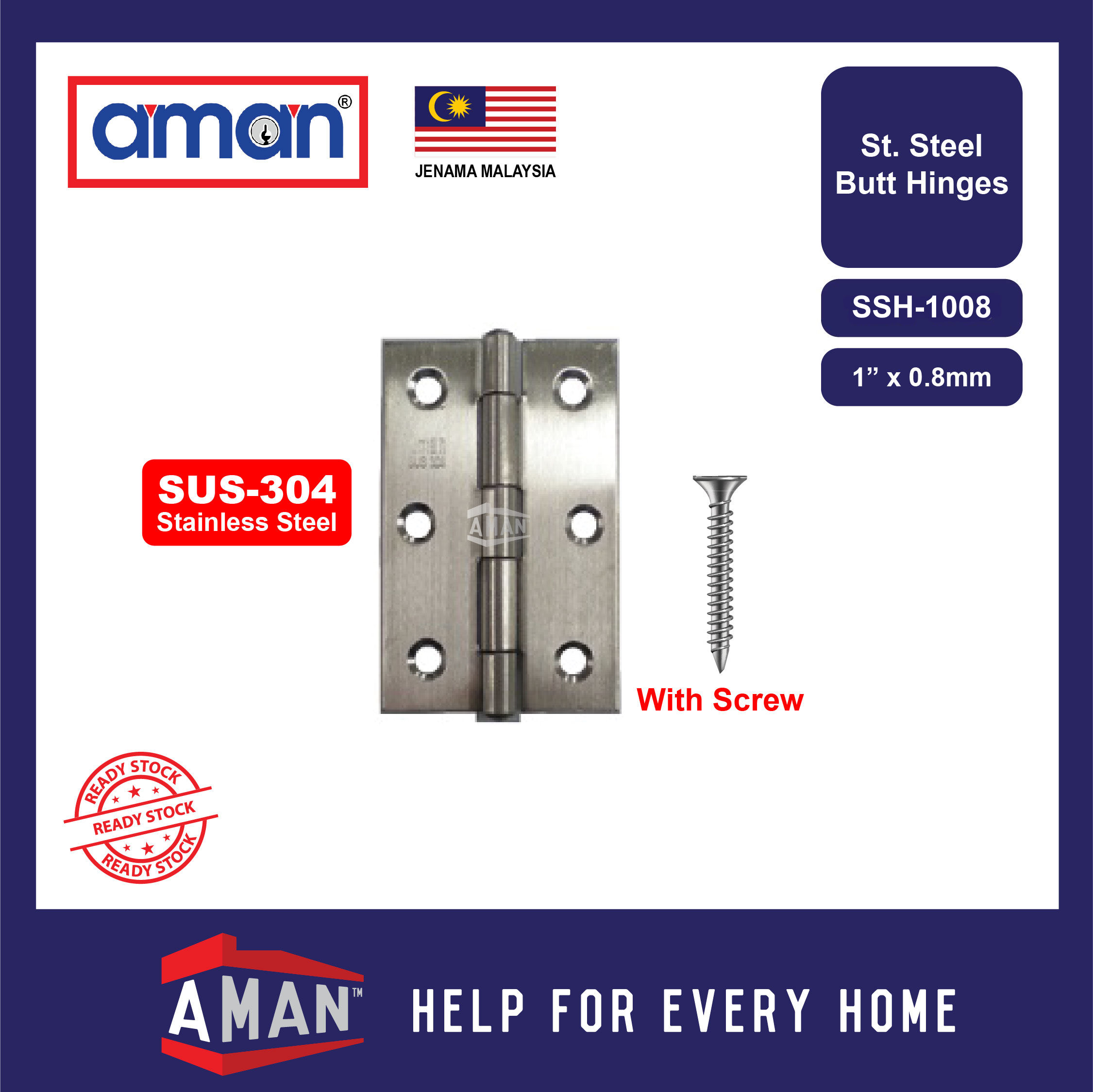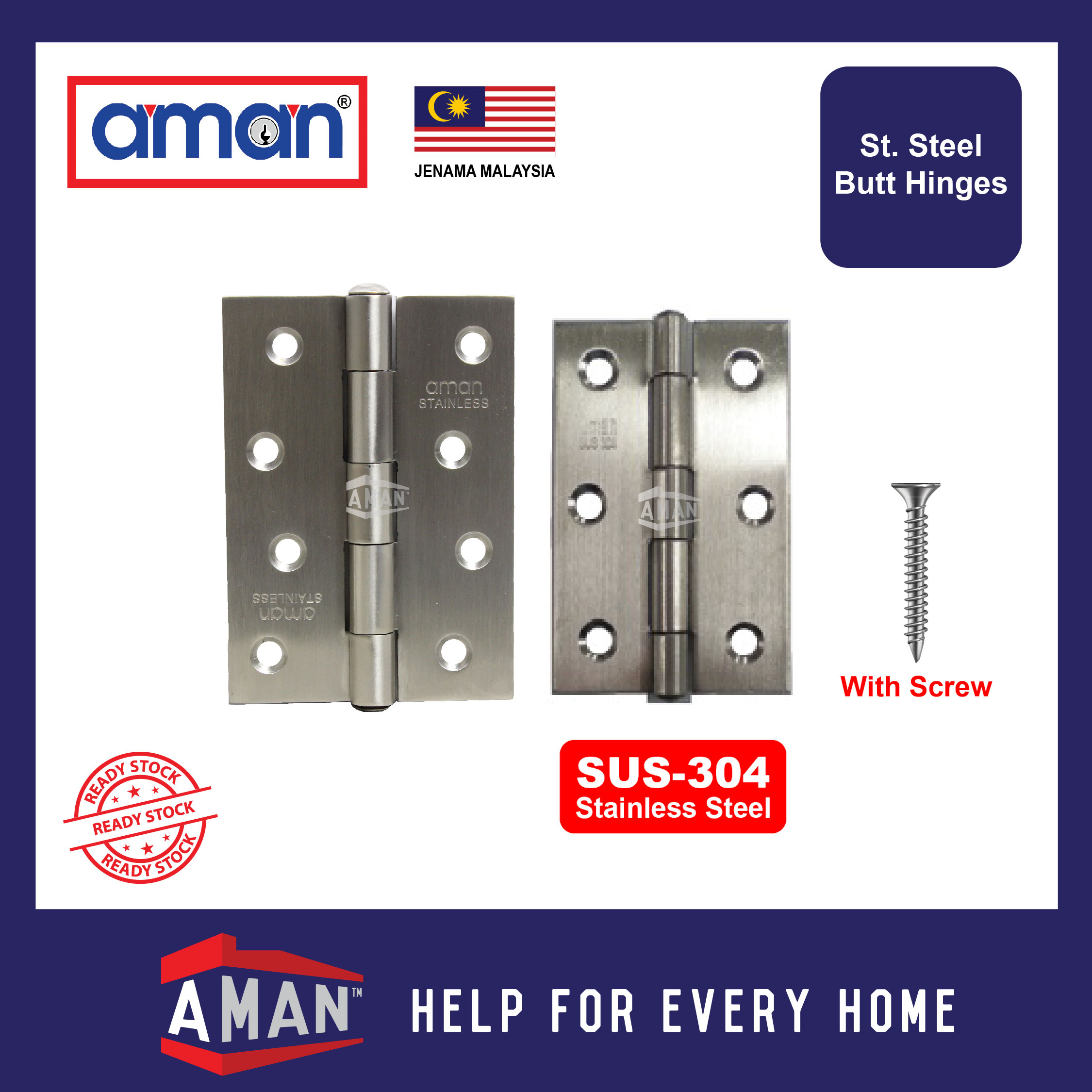 AMAN 2PCS SUS 304 Stainless Steel Hinges With Screw